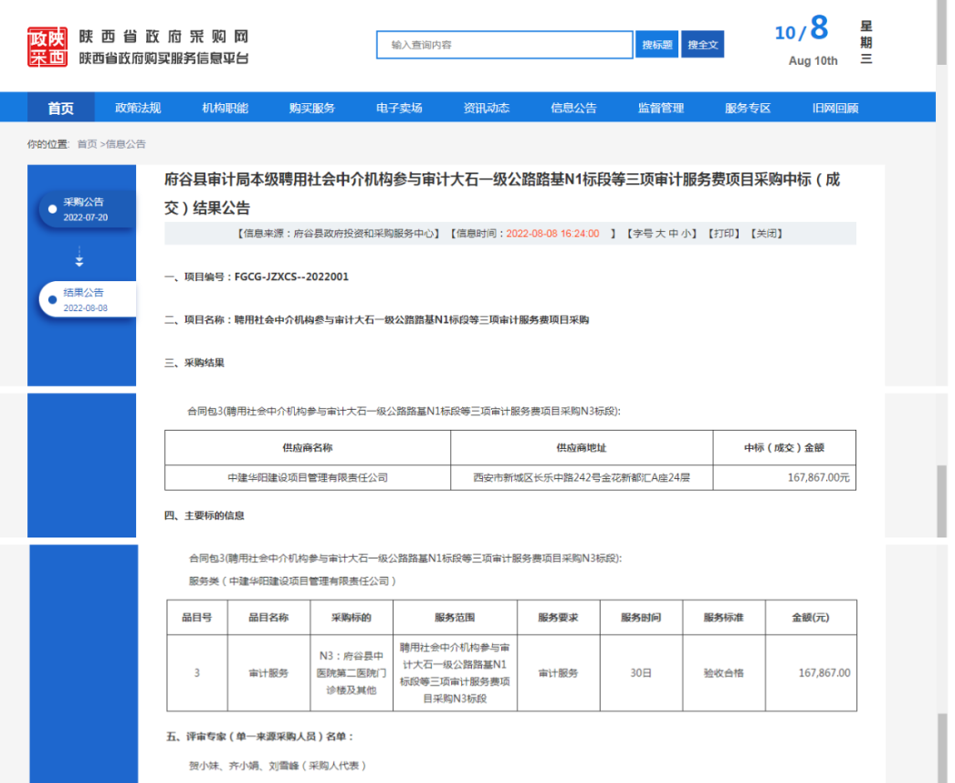 中建華陽(yáng)公司中標(biāo)府谷縣審計(jì)局本級(jí)聘用社會(huì)中介機(jī)構(gòu)參與審計(jì)大石一級(jí)公路路基N1標(biāo)段等三項(xiàng)審計(jì)服務(wù)費(fèi)項(xiàng)目采購(gòu)N3標(biāo)段