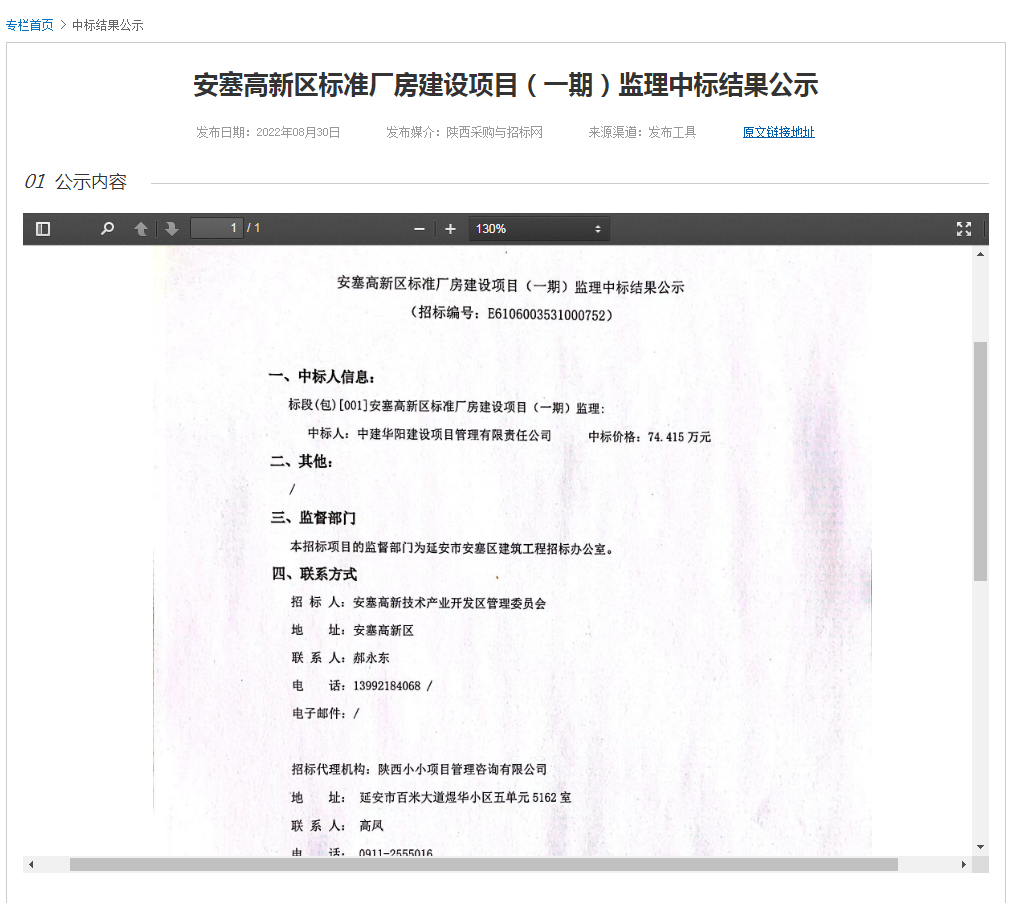 近日,中建華陽公司參與了安塞高新區(qū)標(biāo)準(zhǔn)廠房建設(shè)項(xiàng)目(一期)監(jiān)理投標(biāo),經(jīng)評(píng)審委員會(huì)綜合評(píng)審,招標(biāo)人確認(rèn),中建華陽建設(shè)項(xiàng)目管理有限責(zé)任公司為中標(biāo)單位。
