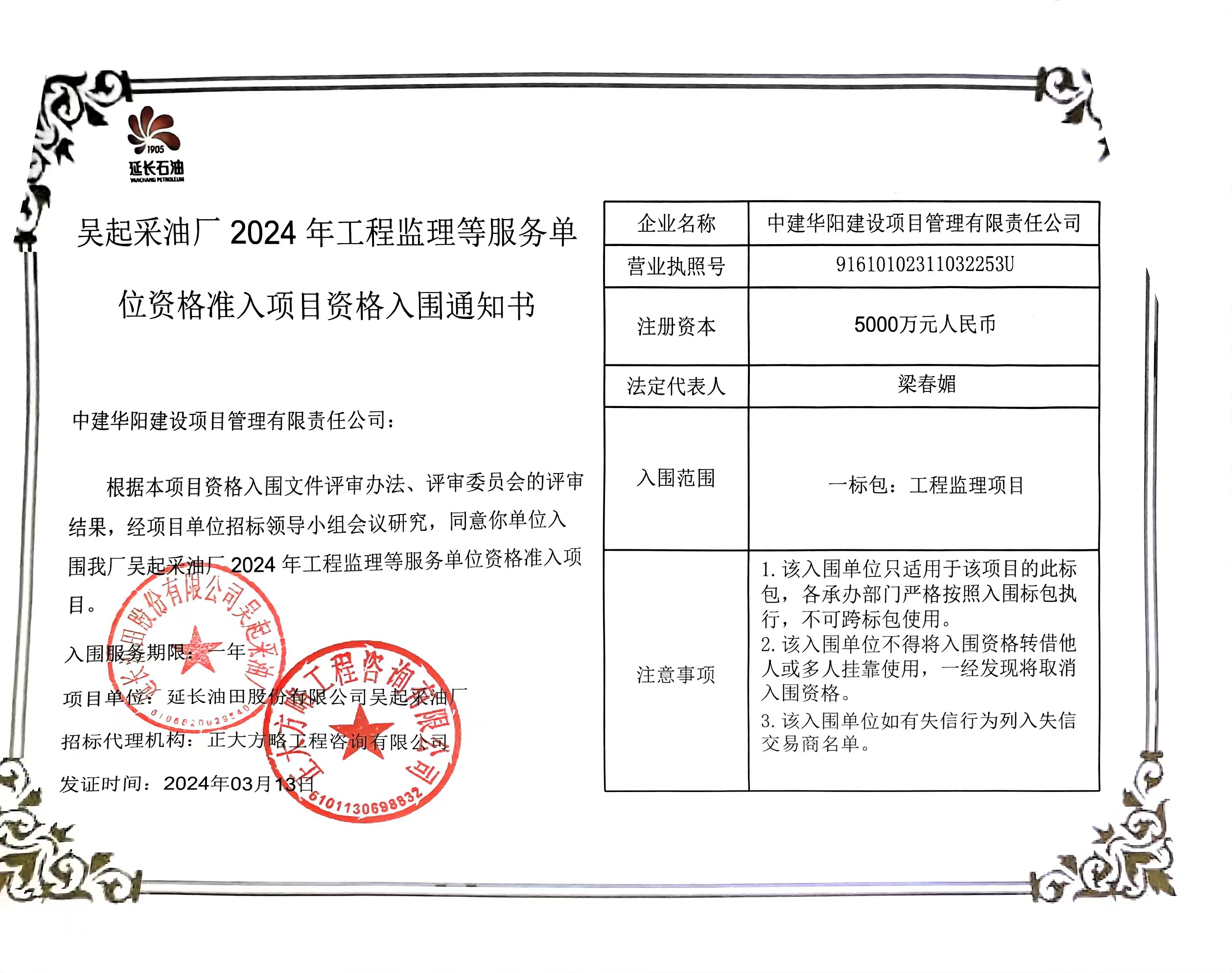 中建華陽(yáng)公司中標(biāo)吳起采油廠2024年工程監(jiān)理等服務(wù)單位資格準(zhǔn)入項(xiàng)目